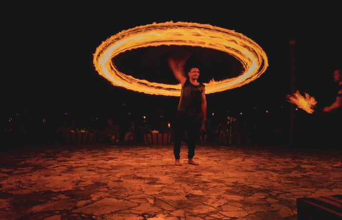 You will admire the beautiful starry skies, listen to Arabian music, and attend incredible shows: belly dancing, Tanura, and fire shows.